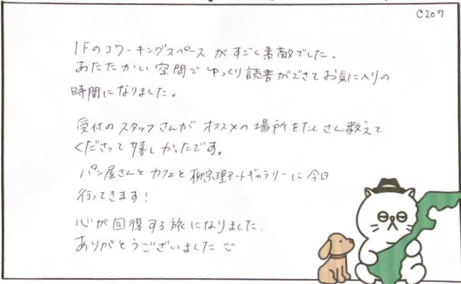 温かい空間でゆっくり読書が出来てお気に入りの時間になりました。